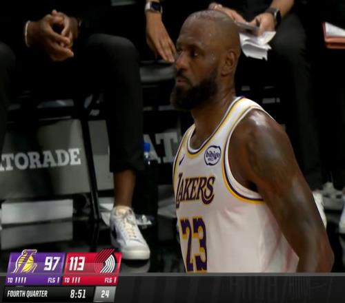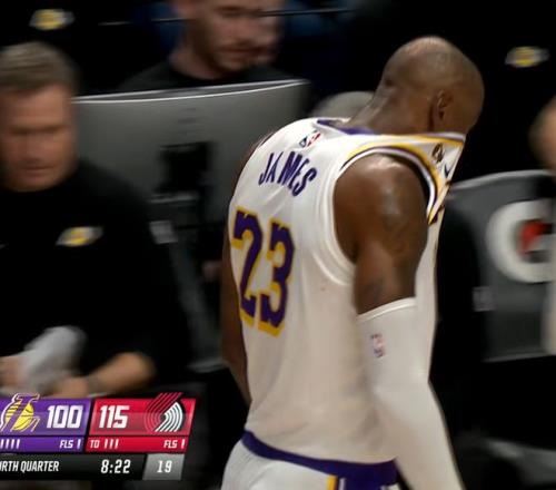 末节詹皇一度发力追分,但坑太大追不上了。关键是,詹姆斯在第三节最后时刻甚至还受伤了,当时时间还剩下16秒,球队落后19分,勒布朗压时间完成一个压哨最后一攻,开拓者对他进行包夹,但是他从人群当中穿了过去,加速冲到篮下,强行完成一次逆天高难度滑翔上篮。
