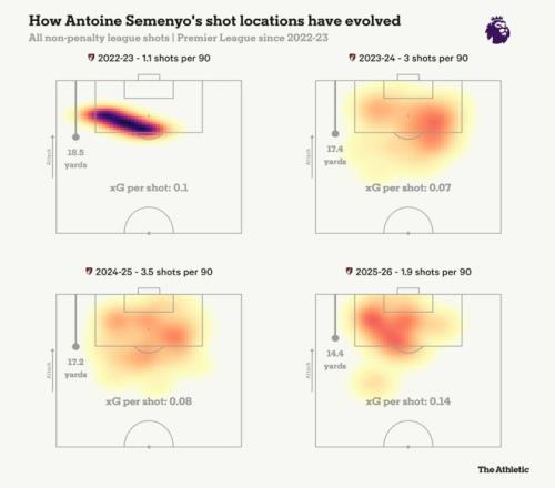 如果在曼联的343阵型中,塞门约的最佳位置是右侧的10号位。当然,他也可以打左路,本赛季他打这个位置的次数更多,其甚至有能力适应边翼卫的要求。这是阿莫林欣赏的特点,他希望前场球员可以游刃有余地换位。